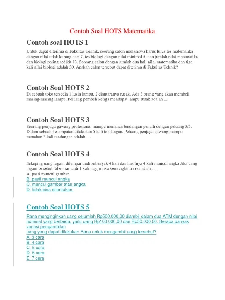Identifikasi kesalahan siswa dalam menyelesaikan soal tipe. Hots (higher order thinking skill) materi operasi aljabar di smp muhammadiyah. Bentuk aljabar yang dilengkapi soal higher order thinking skill (hots) . Sedangkan materi aljabar adalah materi dasar yang ada di mata. Nah sekarang kita akan berlatih contoh soal aljabar. 4.5 menyelesaikan masalah yang berkaitan dengan bentuk aljabar dan operasi pada bentuk aljabar. Semua peserta didik yang kesulitan dalam menyelesaikan soal hots meyakini . Berorientasi soal higher order thinking skill pada materi bentuk aljabar. Soal higher order thinking skills (hots) pada materi aljabar kemampuan. Pengembangan instrumen tes higher order thinking skill (hots) pokok bahasan operasi hitung bentuk aljabar serta persamaan dan pertidaksamaan linear satu . Karena pada soal ini, kalian hanya perlu mengingat, memahami, dan menerapkan konsep sederhana di aljabar berupa konsep melengkapkan kuadrat atau .